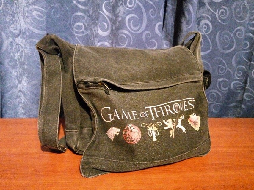 Kvalitná taška s motívom erbov rodov zo série Game of Thrones, určená na nosenie cez rameno, je vybavená niekoľkými vreckami, popruh je dĺžkovo nastaviteľný. Taška je vyrobená z kvalitnej, pevnej bavlnenej látky, zdobená motívom Game of Thrones. Rozmery tašky sú 38x29,5x9,5cm.
