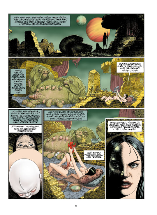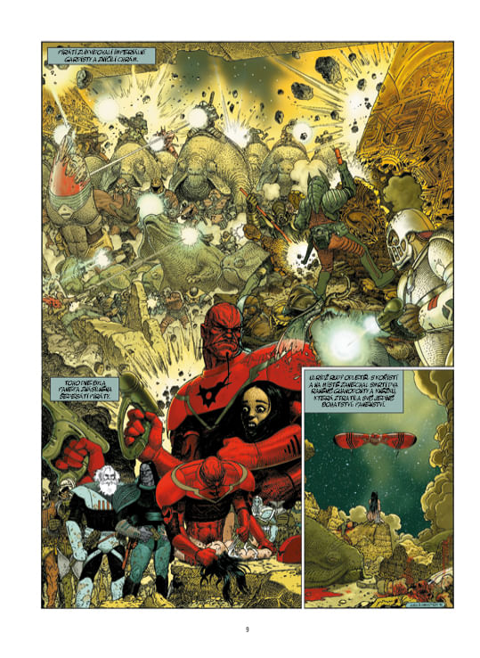 U Jodorowského nejde šlápnout vedle. Jeho "pokřivená" mysl ovlivněná filosofií, náboženstvím, transcendencí a dalšími těžko popsatelnými vlivy vytváří neuvěřitelná dobrodružství. Nabízí se srovnání s Kastou Metabaronů. I zde je v centru dění jedná rodina, která má vliv na celý vesmír. Kresba je úchvatná a stejně jako u Moebia v Incalu a Gimeneze v Kastě úchvatně dotváří děj a nechává si záležet na každém detailu. Jodorowská si umí vybírat parťáky. Jen aby to nebylo v samých superlativech: Pouť Albina možná až moc připomíná Kastu Metabaronů a místy se opakuje hlavně, když se Albino prokousává jednotlivými institucemi. Přesto i přes 400 stran jsem komiks zhltl na posezení.