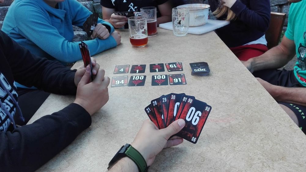 Je toto hodnotenie prínosné? ÁNORychlá a poklidná hra. Její výhoda je, že je jako málokterá karetní hra kooperativní a hráči jsou tedy na stejné straně proti hře. Ale ty nervy, když vám tam ten druhý položí kartou, kterou vám naprosto zkazí ruku (protože si hráči nesmějí říct nic o číslech, které drží na ruce)... k nezaplacení.. (teda za 220Kč :) ). Je to rychlé a vejde se to i do vlaku na cestách :) Nejlepší přirovnání jsou asi klasické solitéry na PC, jen to tu není od esa po krále, ale to od 1 do 100 a opačně. Určitě za zkoušku stojí.