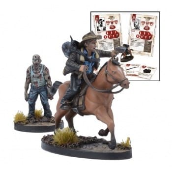 Sada Rick on Horse Booster pre plochých hru s miniatúrami podľa rovnomenného hororového komiksu The Walking Dead: All Out War obsahuje 2 miniatúry (Rick na koni a Walker), ďalej potom karty postáv a vybavenie (toto balenie obsahuje aj alternatívne karty pre Ricka a Shane).