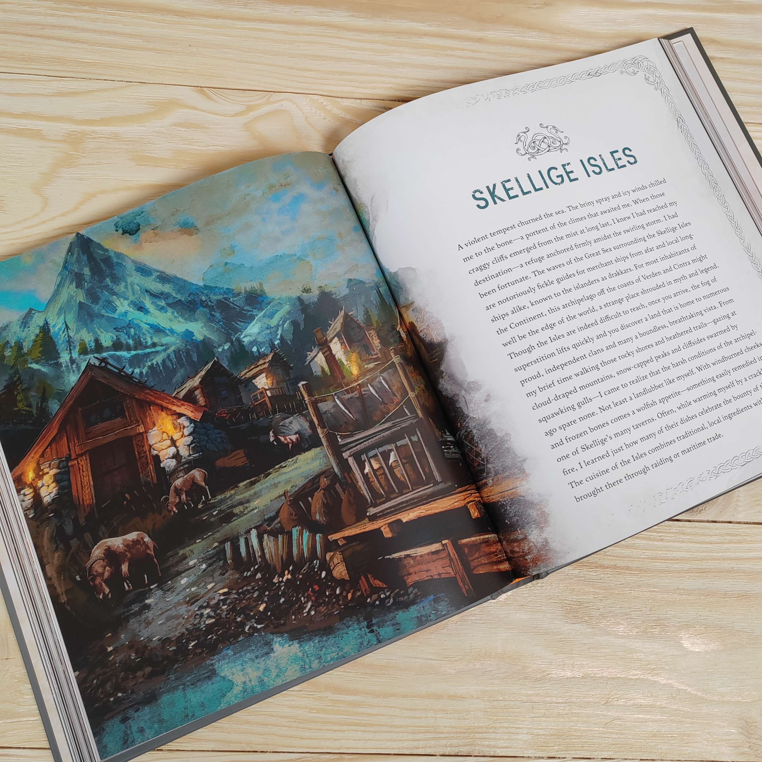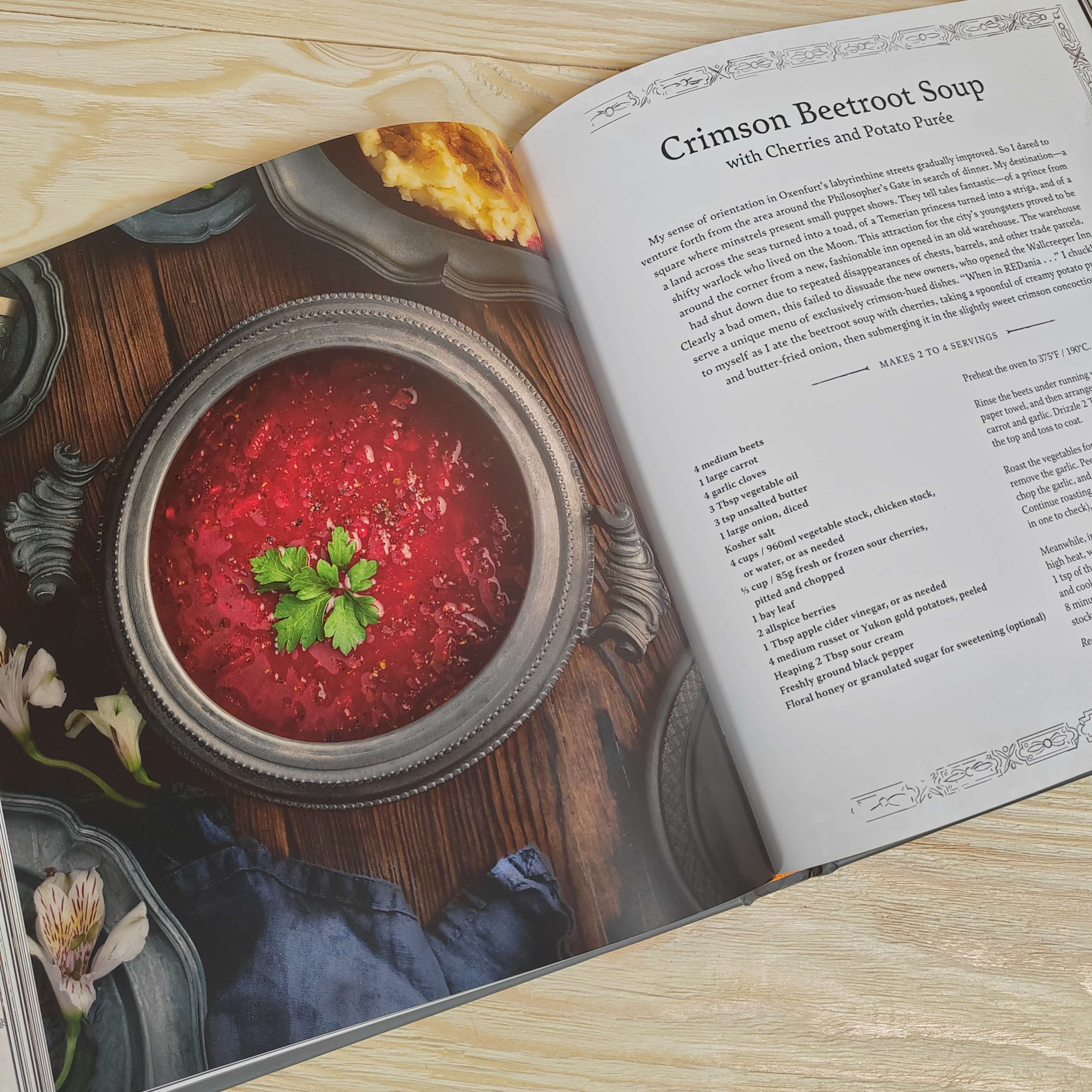 These dishes celebrate local and seasonal ingredients while adding unique twists that form a culinary map of the Continent and beyond. Warm up over a bowl of fragrant stew or juicy baked fruit from the namesake trees of White Orchard; end a hard journey to Velen with a hearty, rustic meal at the local tavern; enjoy an aromatic snack as you stroll the markets of Oxenfurt; sample dishes from near and far in the diverse port city of Novigrad; dine on freshly-caught fish and mulled drinks on the islands of Skellige; feast on rich dishes in the sun-drenched climates of Toussaint and Beauclair; or forage on the perilous road to Kaer Morhen to learn the edible secrets of the witcher's keep. Transport your kitchen to another world with the tempting scents and flavors in The Witcher Official Cookbook.