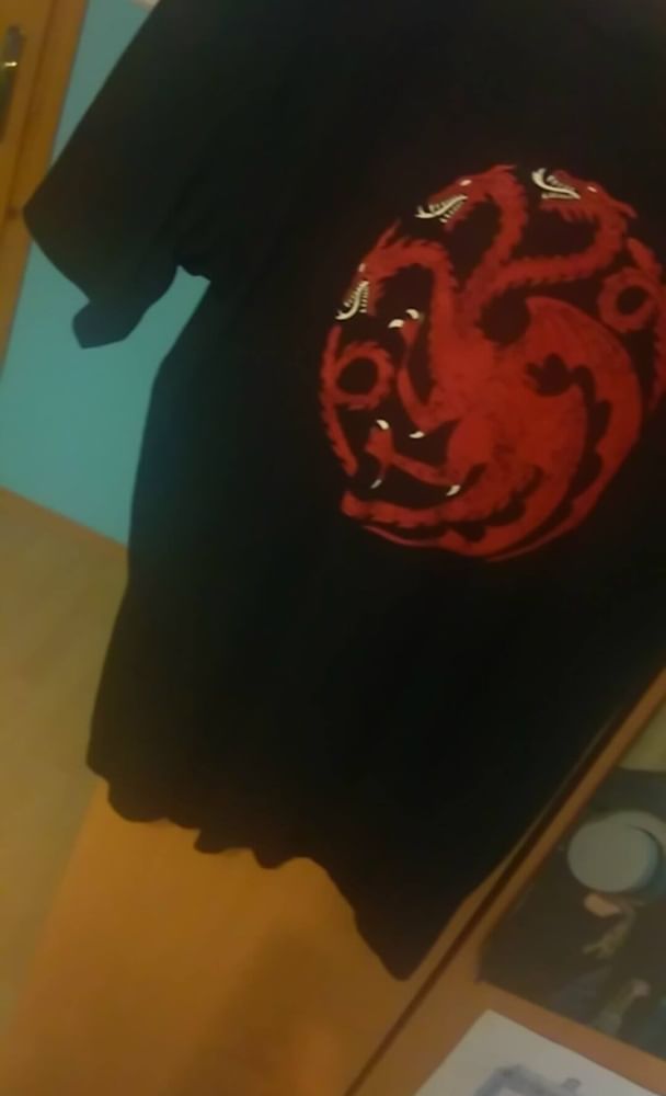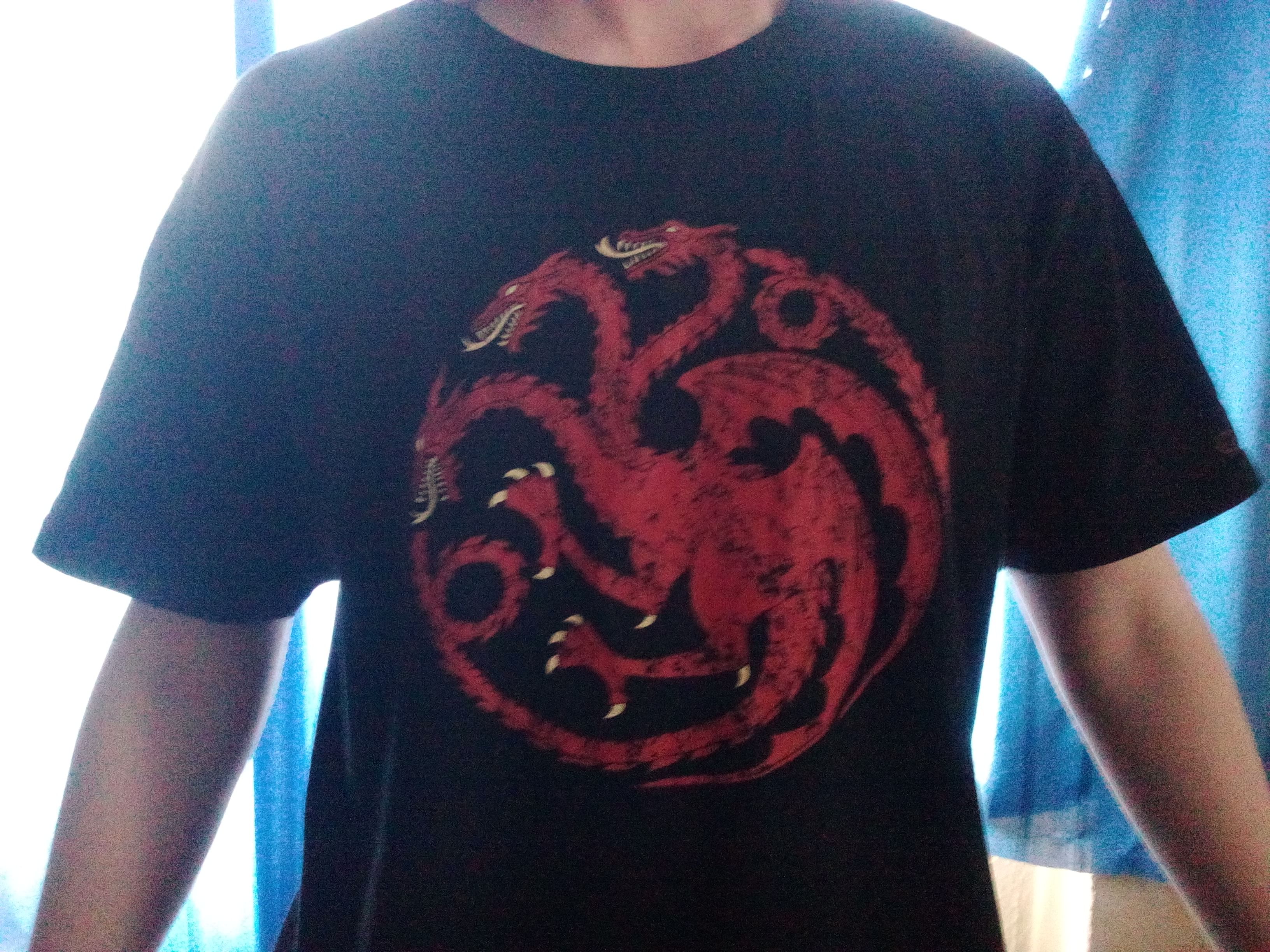 Kvalitné tričko s vyobrazením znaku rodu Targaryenů zo seriálu Hra o tróny - Game of Thrones na motívy rovnomennej knižnej Predlog George R. R. Martina. Materiál 100% bavlna, gramáž 185g / m2. K dispozicii vo veľkostiach M, L, XL a XXL.