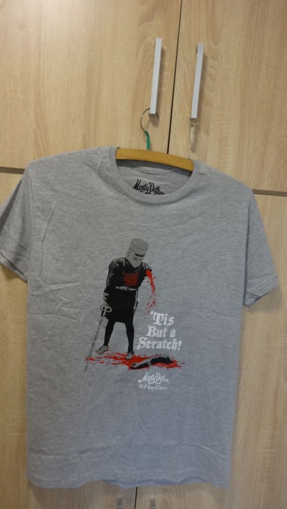 Bavlnené tričko s motívom z filmu Monty Python a Svätý grál. K dispozícii vo veľkostiach S, M, L a XL.