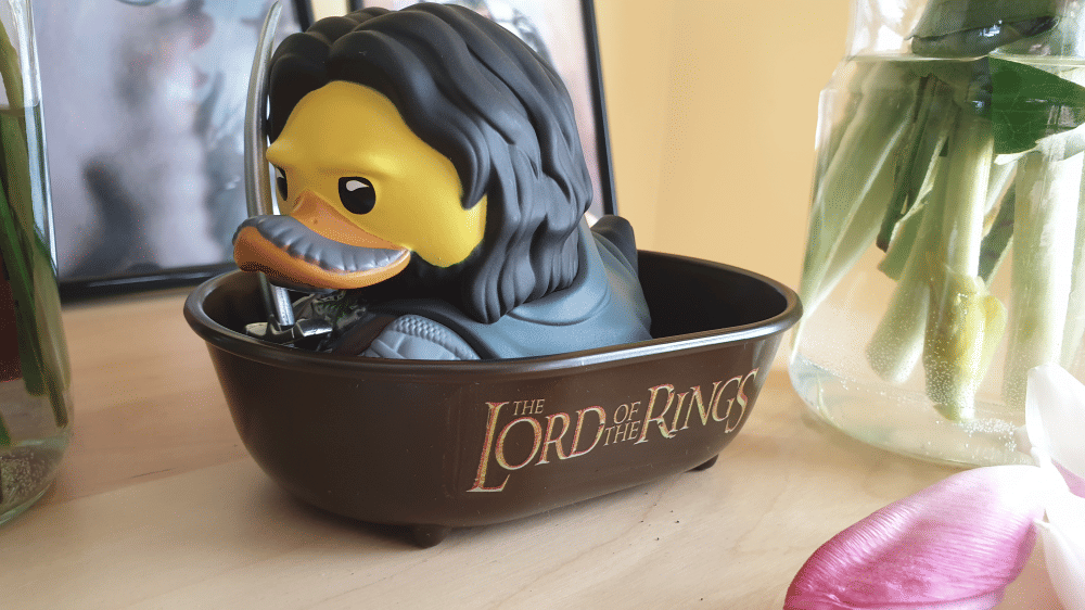 Kačička sa dodáva s vlastnou vaničkou s nápisom The Lord of The Rings, ktorú možno použiť ako stojan (samostatne alebo v kombinácii s priehľadným krytom). Potom je už len na tebe, či chceš Aragorna vystaviť na vaničke, alebo sa stane nedotknuteľnou súčasťou tvojej zbierky na výstavnej poličke!