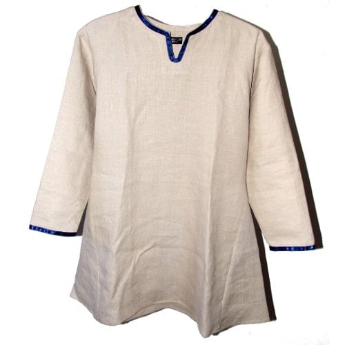 Ušitá môže byť buď z plátna či ľanu, dyftýn, honosná variant má spodný lem, golier a rukávy ozdobené prýmkom (typ lemovky si môžete vybrať tu ). K dispozicii je vo veľkostiach S až XXL.