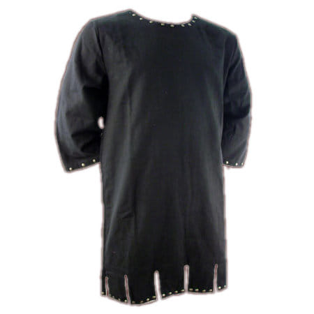 Tunika z čierneho plátna, spodný okraj je opatrený hradbami, pozdĺž goliera, rukávov a spodného lemu je zdobená kovovými nitmi. Ideálny základ kostýmu na LARP či dřevárnu. K dispozicii je vo veľkostiach L a XL.
