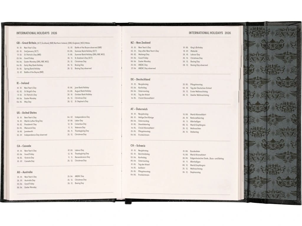 Vo vnútri na vás čaká kvalitný papier s gramážou 90 g/m², na ktorý sa skvele píše. Diár má spolu 144 strán, je v angličtine (medzinárodná verzia), ale nebojte sa – dni a mesiace zvládnete aj bez NKÚ. ⚡
