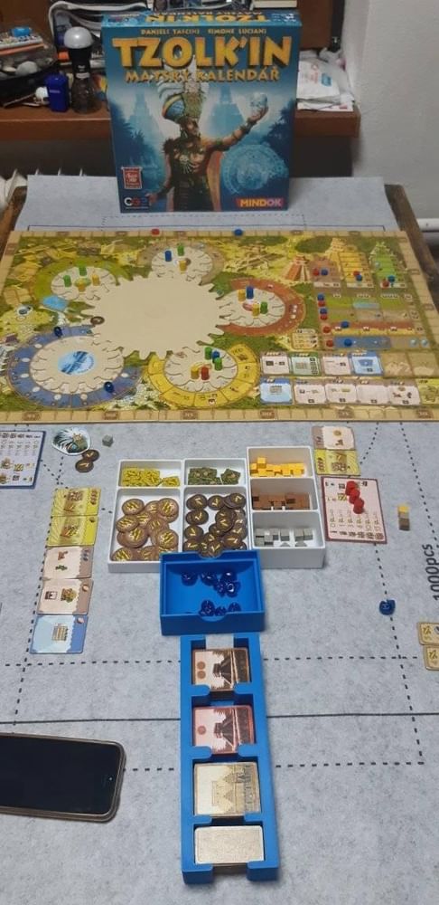 Jedinečná mechanika - otáčanie ozubenými kolesami - postupne premieňa hernú dosku, je to veľká zábava a robí to hru naozaj jedinečnou. Tzolkin je náročnejšia strategická hra a potrebujete ju zahrať niekoľko krát, aby ste pochopili na čo si dať pozor. Najmä zháňanie kukuríc (platidlo v hre) môže byť na začiatku naozaj frustrujúce, ale nedajte sa zlomiť! Postupne zistíte ako na to, aké sú vaše možnosti.