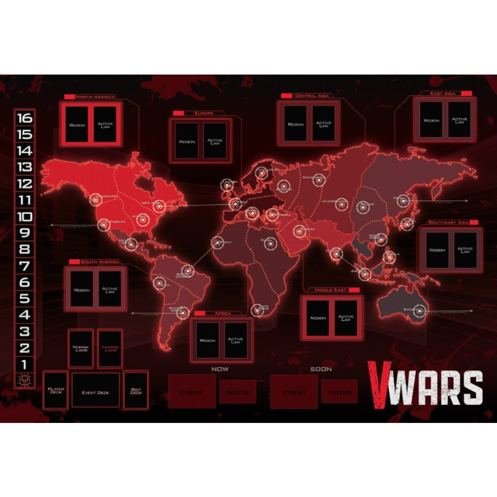 V-Wars je dosková hra, v ktorej ľudstvo čelí upírom v totálnej globálnej vojne. Tento konflikt je desivý tým, že aj tí vaši najvytrvalejší spojenci sa môžu razom stať vašimi protivníkmi a zmeniť stranu.