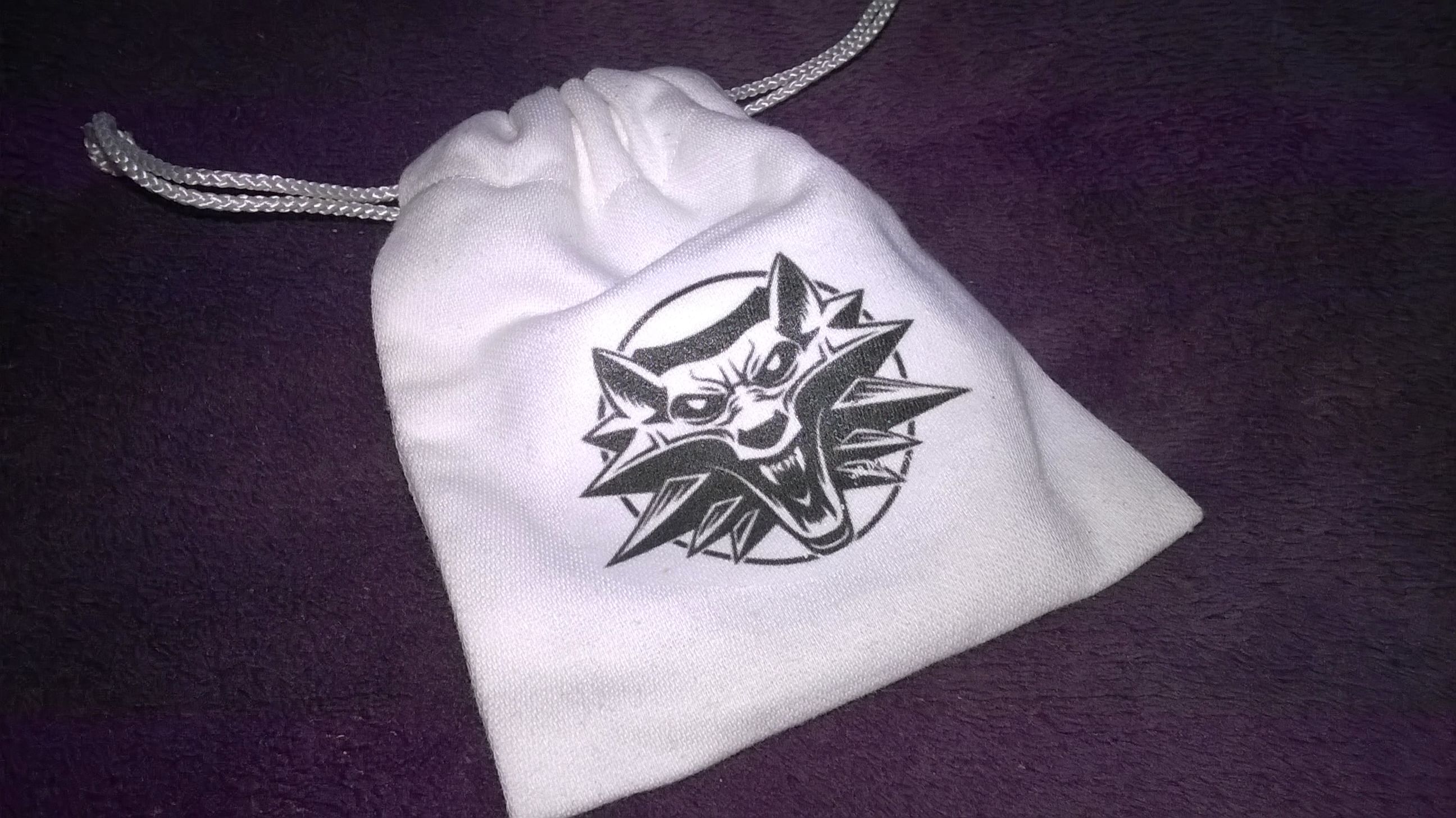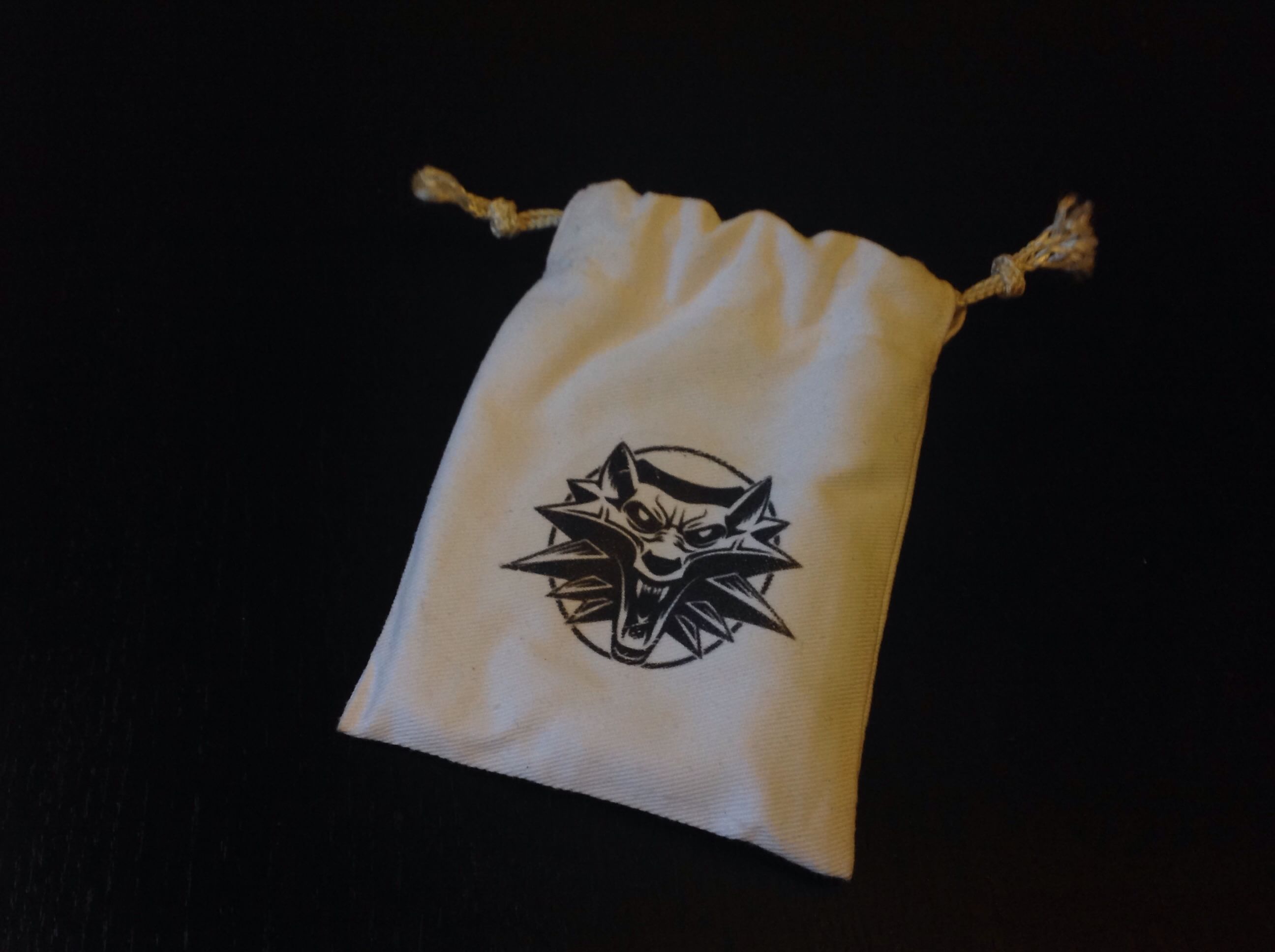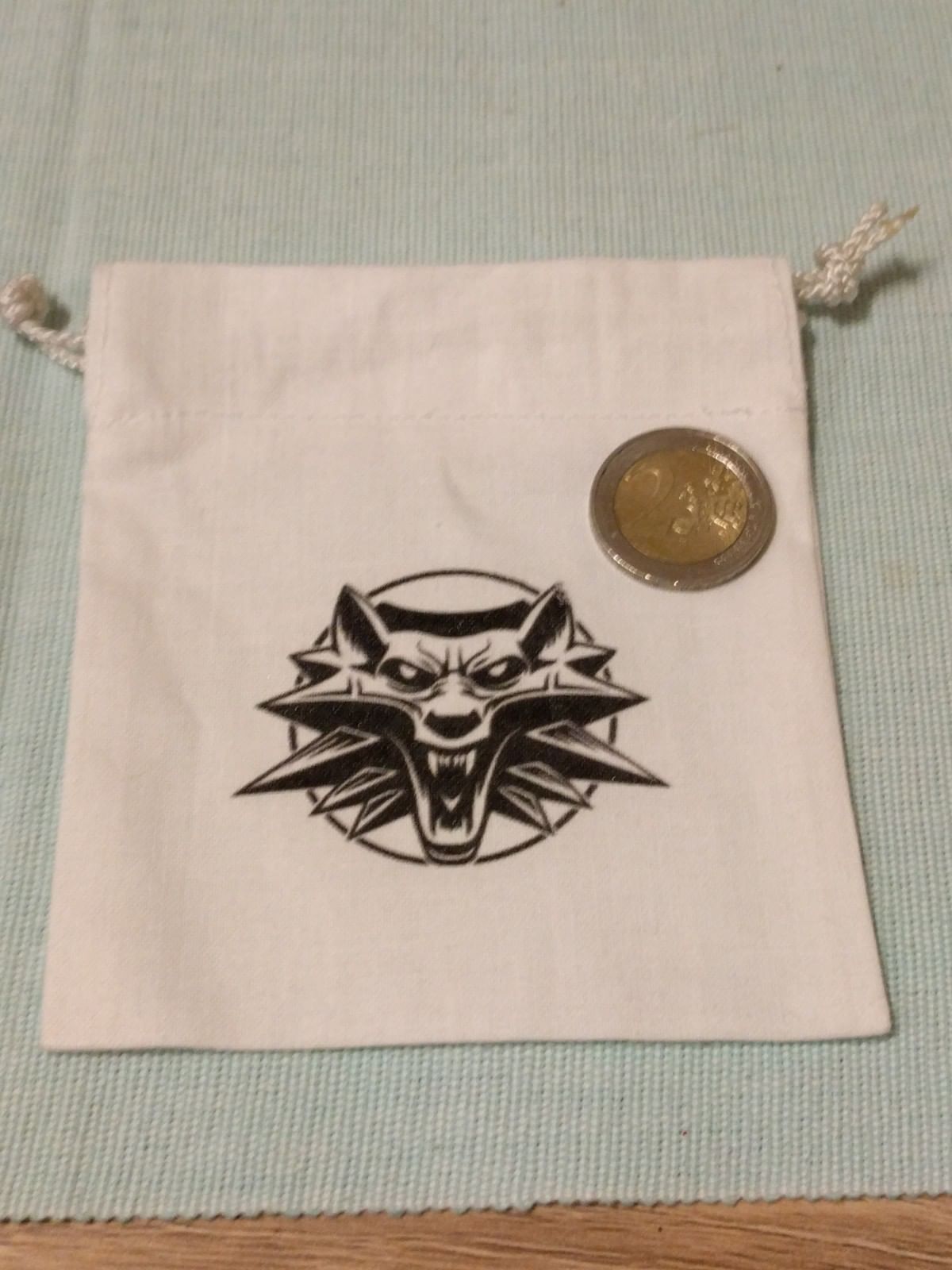 Pěkný váček s logem zaklínače, schovávám do něj žetony z deskové hry Zaklínač, pěkně se vejdou a vypadá to stylově.