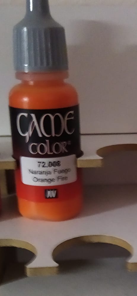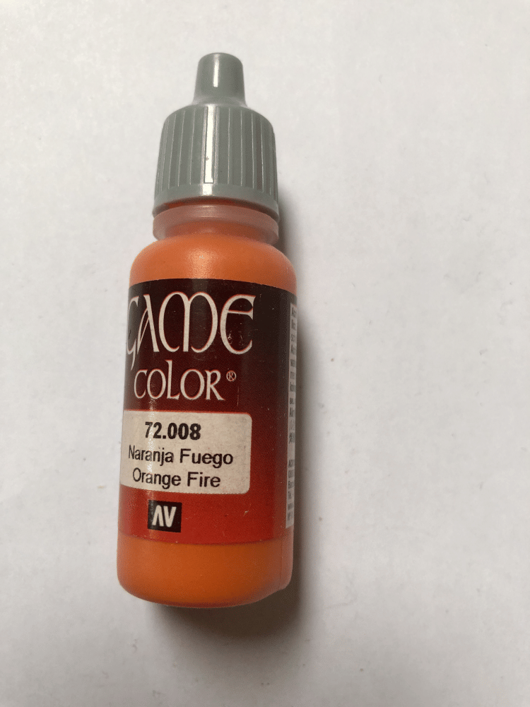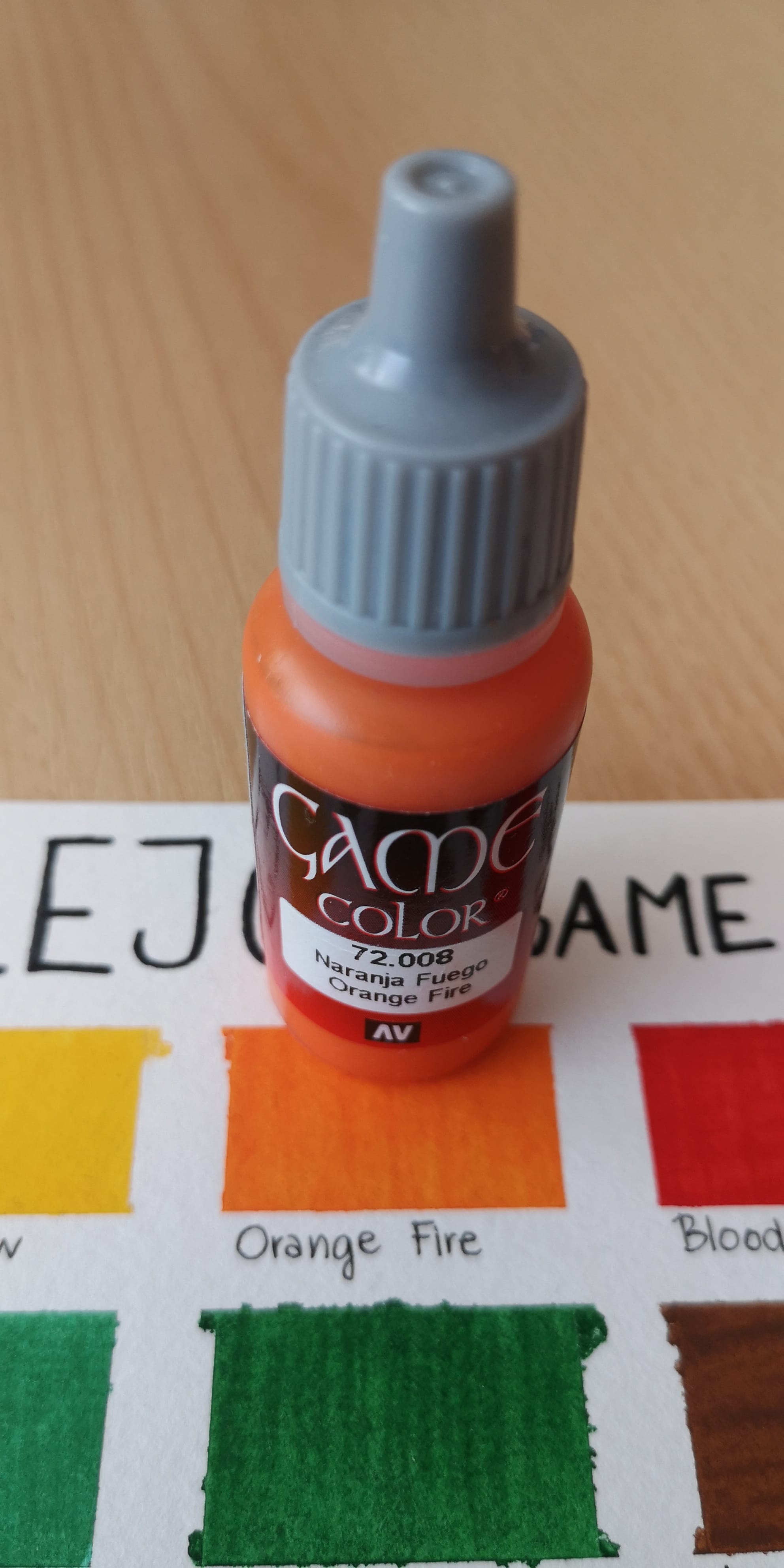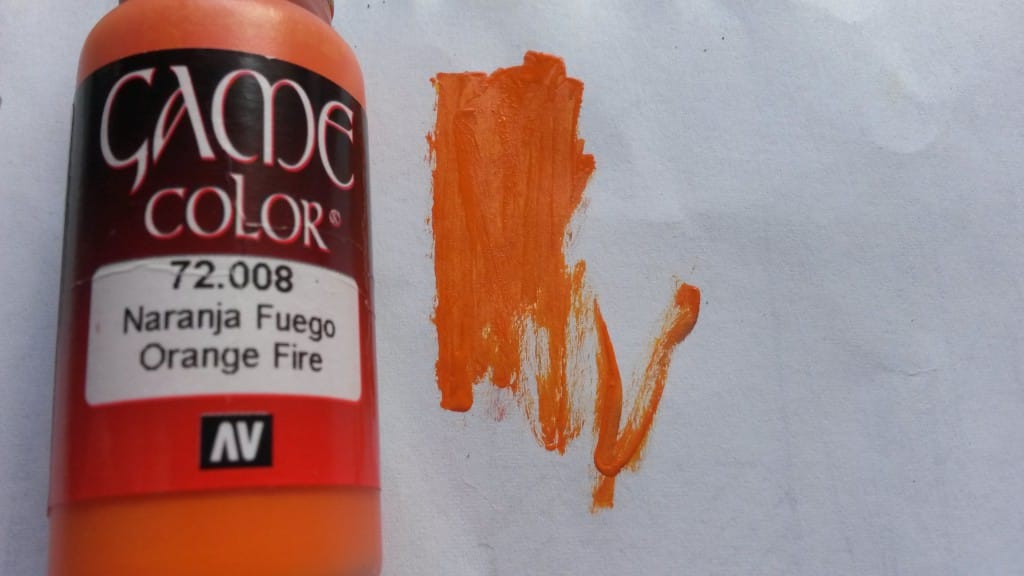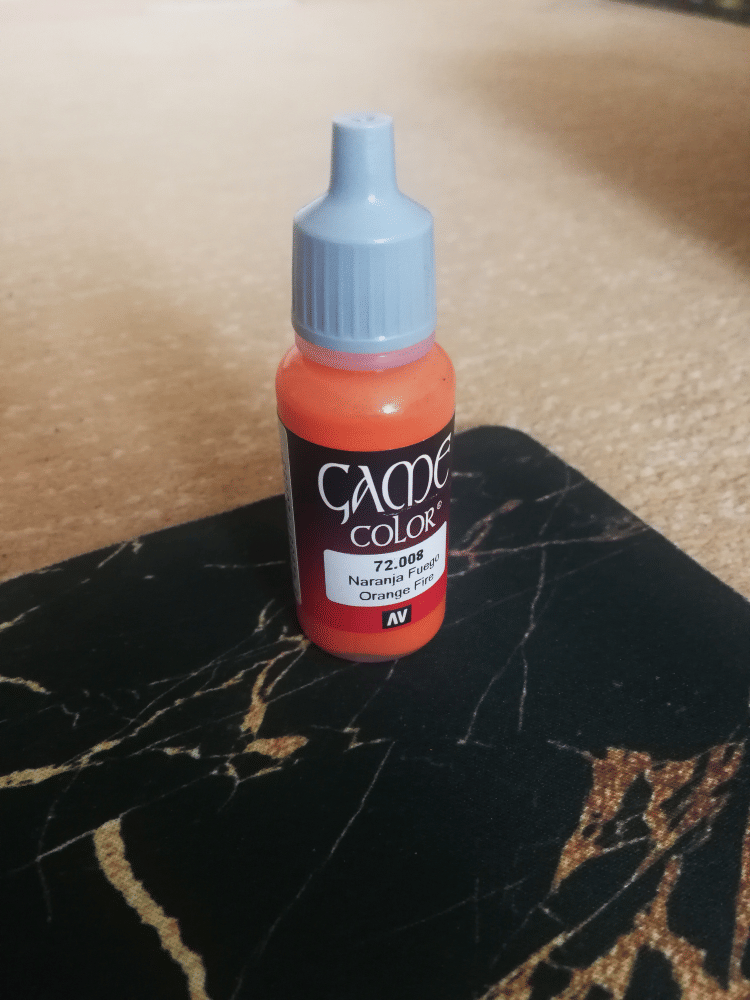 Svítivě oranžová barva. Barvy Valejjo si nemůžu vynachválit - jsou v šikovných lahvičkách které jen tak nevyschnou, perfektně kryjí a 17ml vyjde na hodně miniaturek.