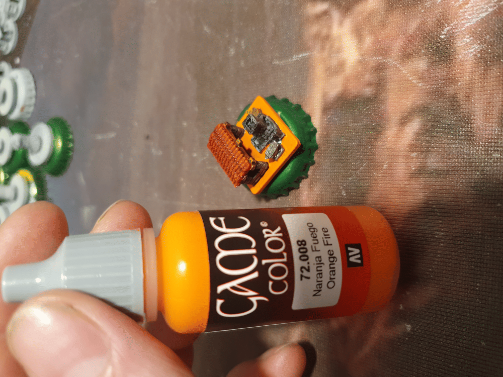 Je toto hodnotenie prínosné? ÁNOPřekvapivě kryvá oranžová akrylka od Vallejo, při světlém podkladu stačila jedna vrstva.
