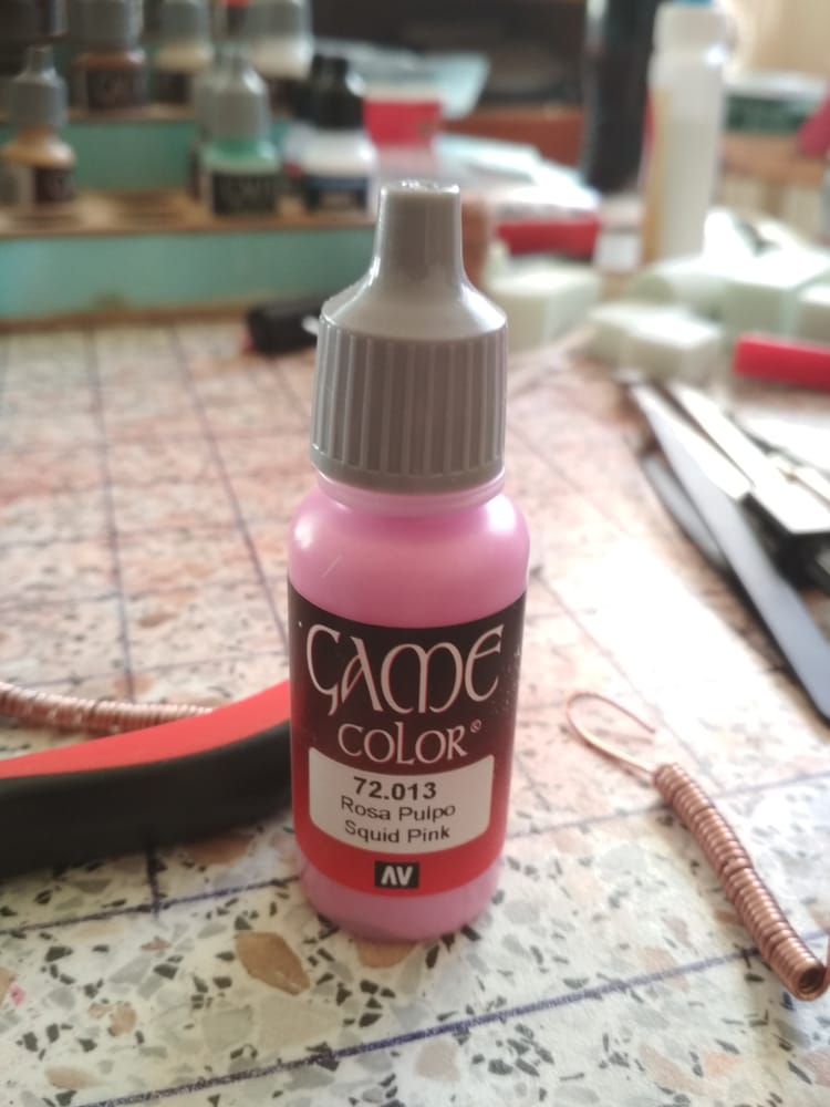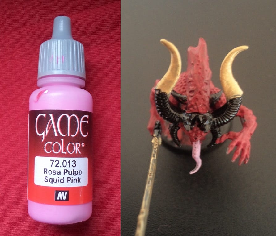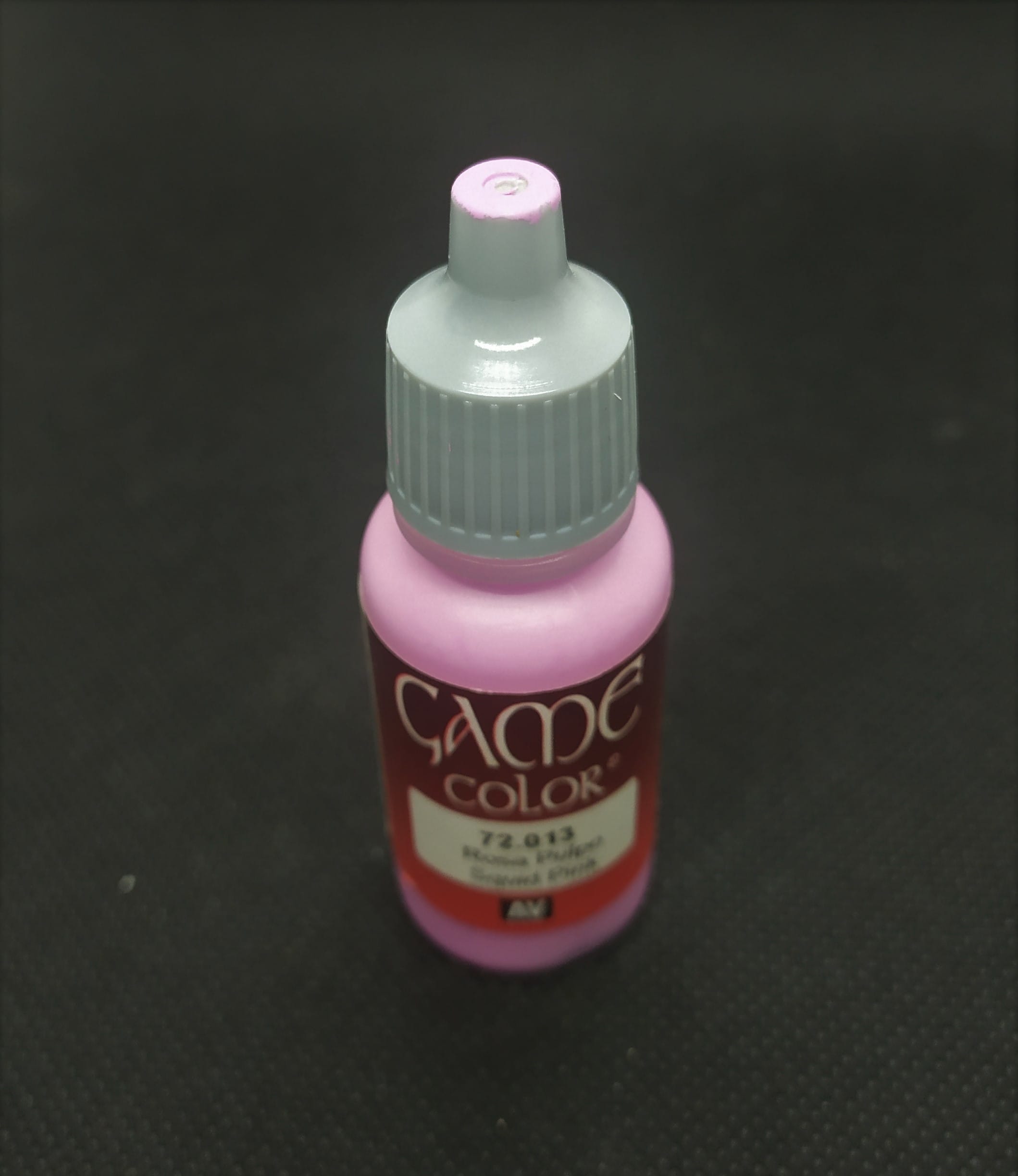 Barvy od Vallejo mě poslední dobou hodně baví. Z hlediska kvality mohou určitě konkurovat těm od Citadely. Tato krásná růžová barva se hodí na highlighting jazyků a dalších detailů. Občas používám růžovou jako podklad pod žluté odstíny, barvy se pak krásně propojí.