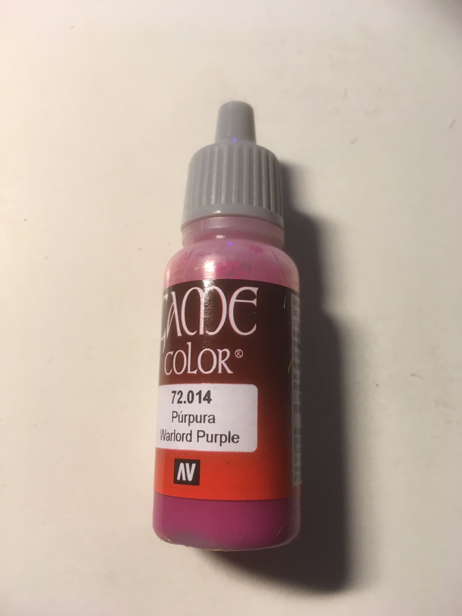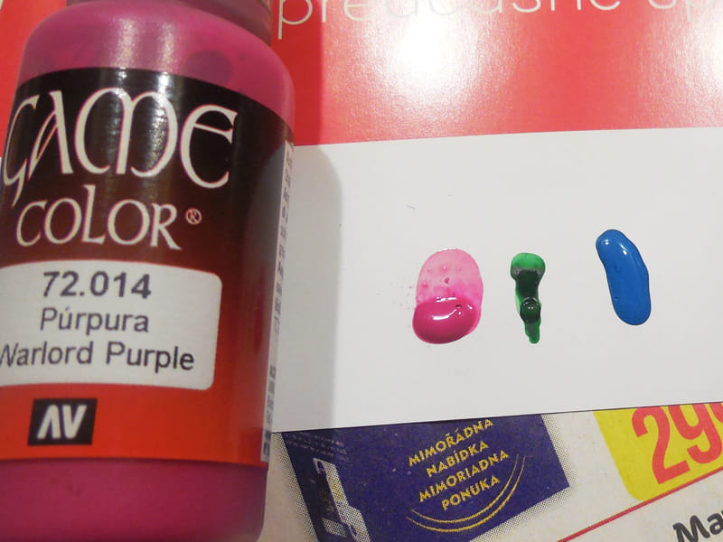 Je toto hodnotenie prínosné? ÁNOValejo barvy mám už vyzkoušené a jsou velmi dobré - nezasychají na paletě tak hrozně rychle jako Citadelky, takže se s nimi lépe pracuje. Kapátko je opravdu praktické. Nutno protřepat před použitím - jako každou jinou barvu. Odstín Warlord Purple je pěkně sytý, světlejší, ale ne tolik jako magentová. Celkově odpovídá odstín tomu na fotce láhve od výrobce.