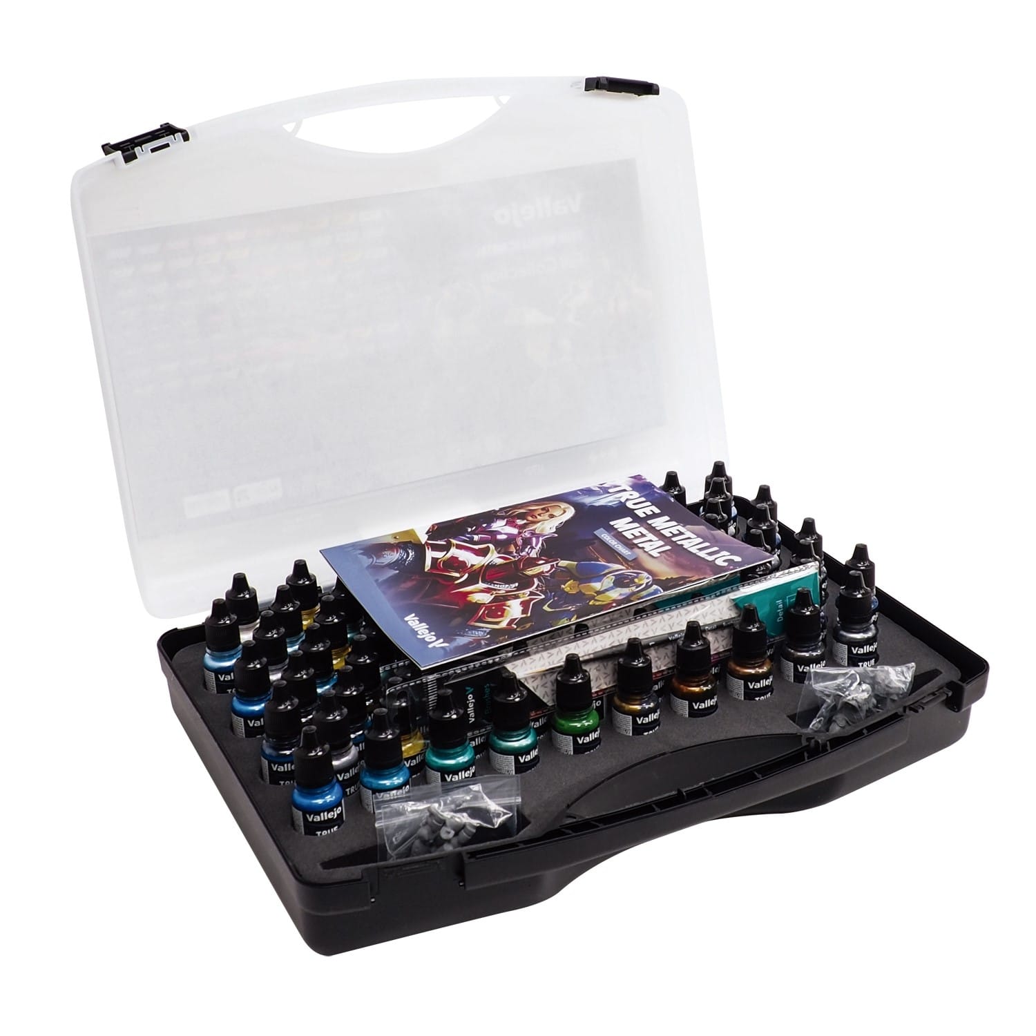 Vallejo: True Metallic Metal - Color Case (80x 18ml + 2x štetce a 2x figúrka)