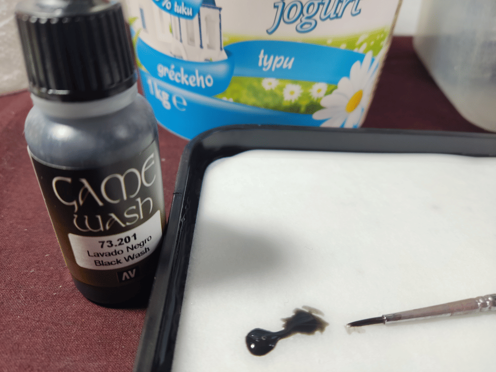 Použitý ako samostatný wash na nenamaľované figúrky. Pekne zvýrazní črty, odtieň je vernej čiernej farby,