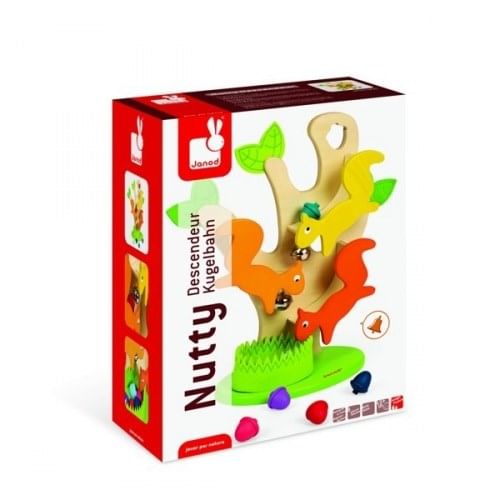 Oriešky sú taktiež vyrobené z dreva, hračka je vhodná pre deti od 12 mesiacov.