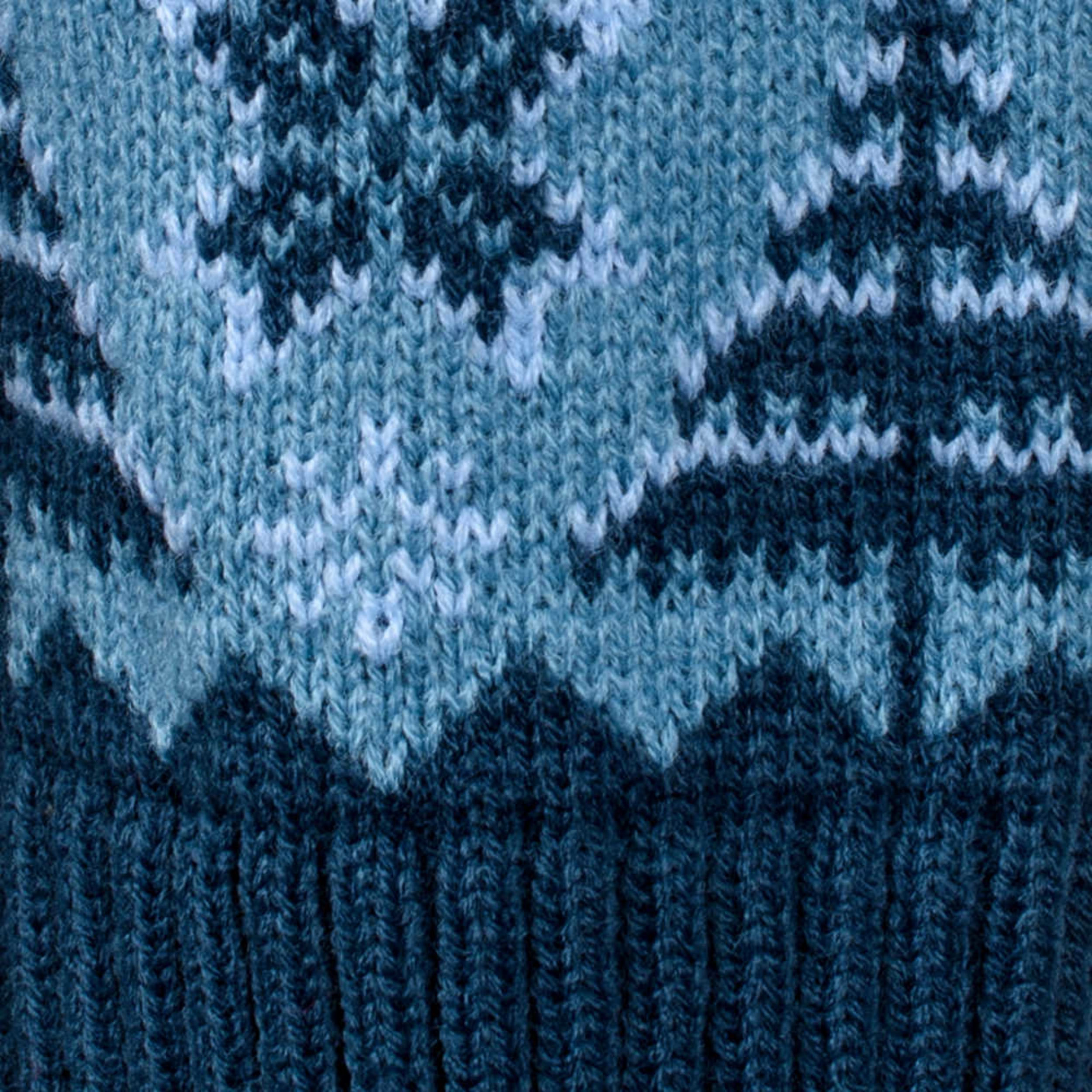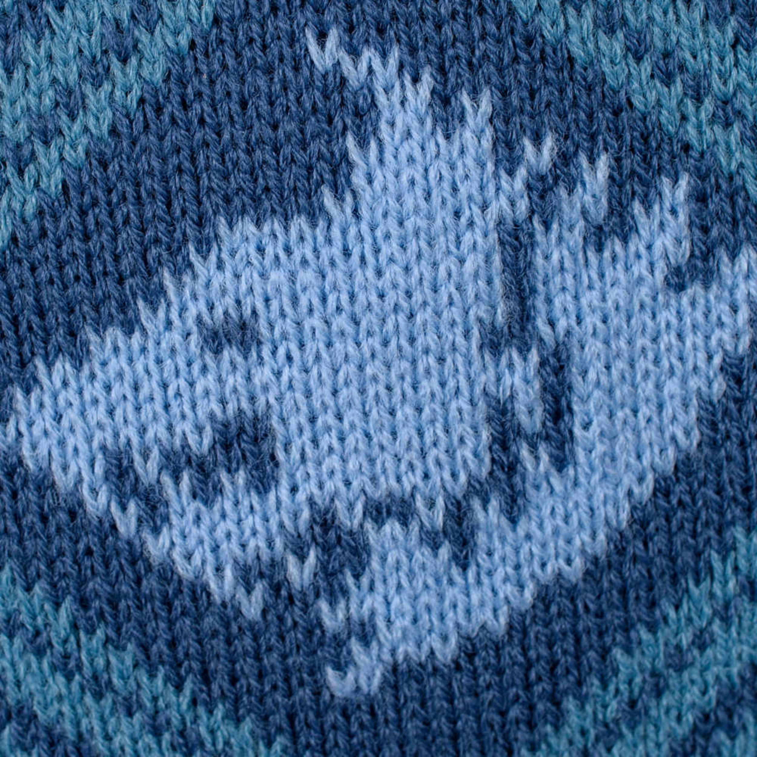 Pletený sveter zdobí mrazivý dizajn s ikonickými symbolmi Space Wolves v ľadovo modrých a šedivých tónoch.