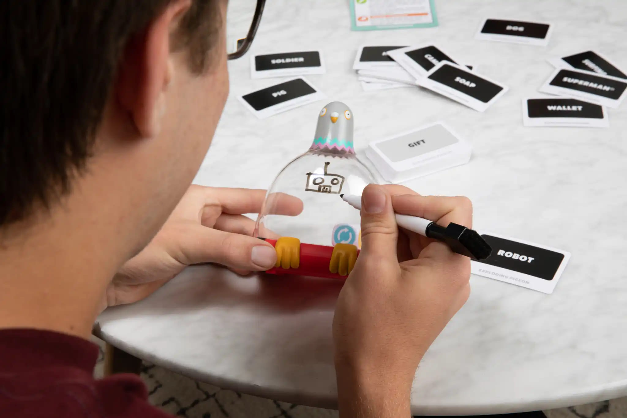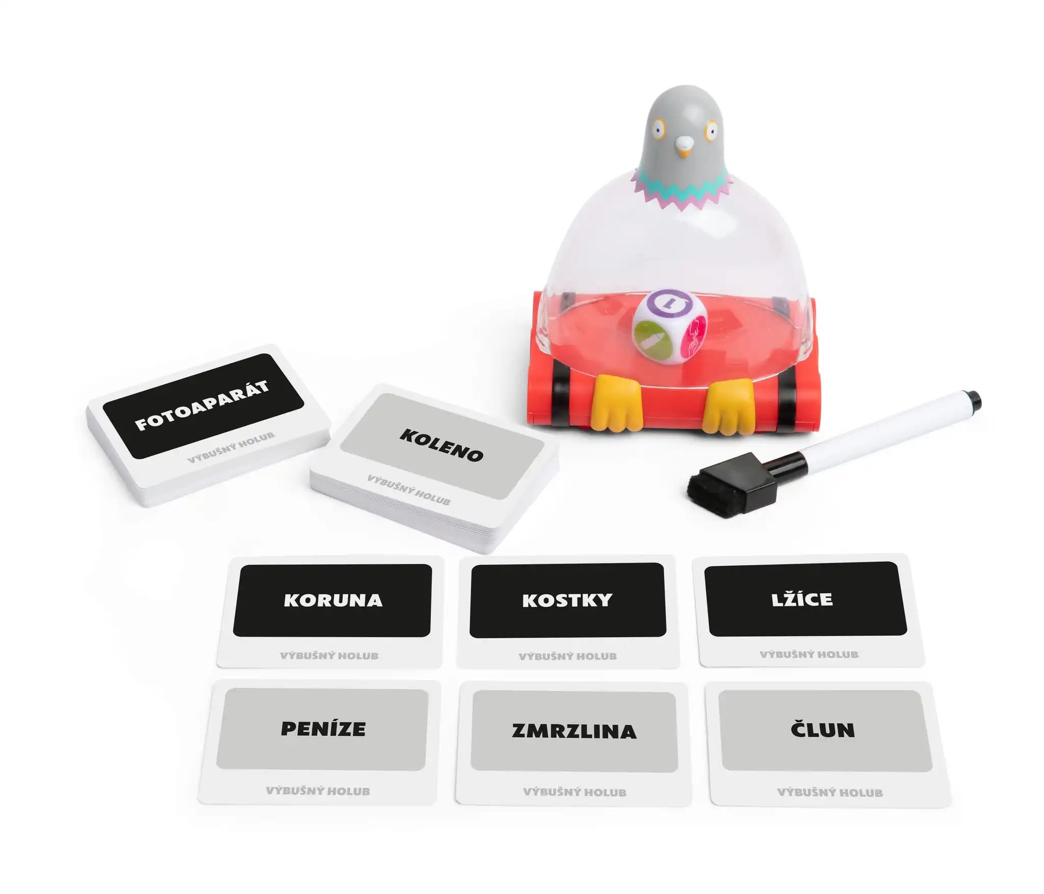 Výbušný holub je rodinná párty hra, kde hráš rýchlo, hádaš ešte rýchlejšie a nesmieš byť pristihnutý, keď holub vybuchne!