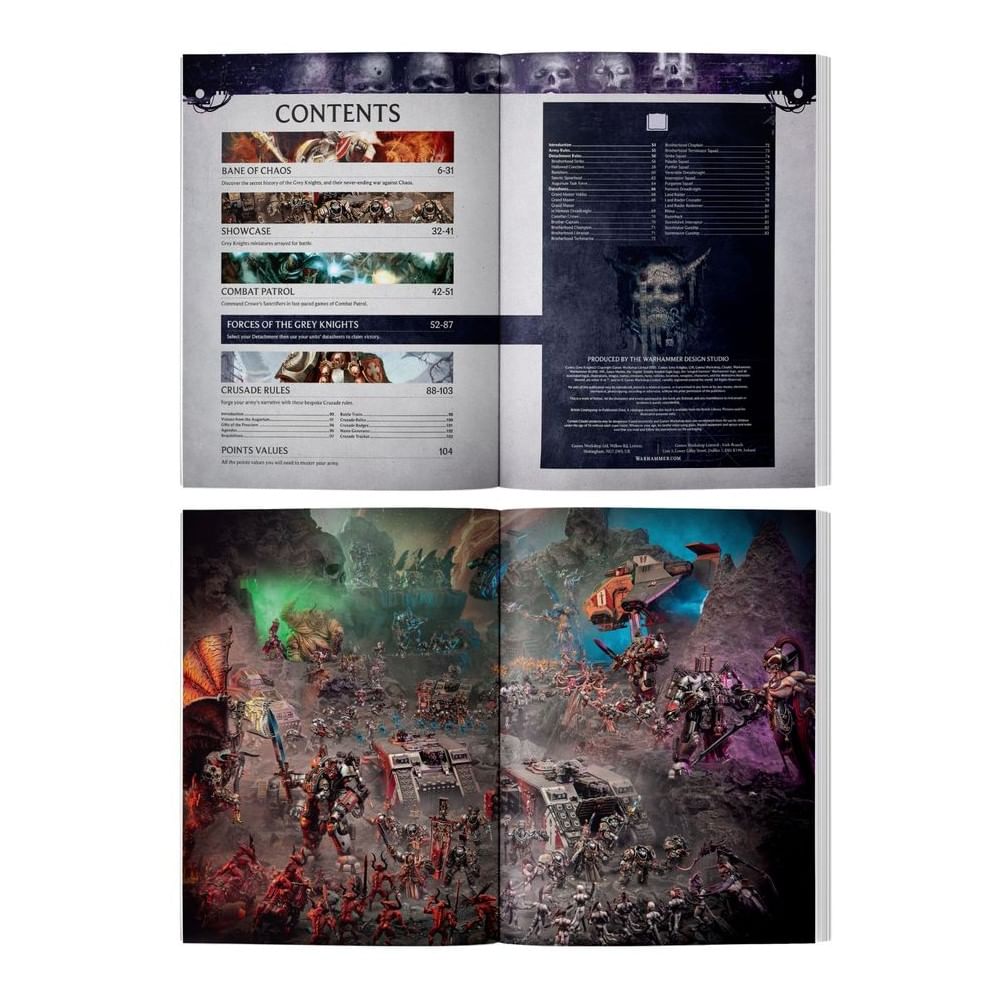 - Pravidlá pre používanie sivých rytierov v Games of Warhammer 40 000, s 25 údajmi, piatimi oddeleniami a bránou pravidla pre celú armádu Infinity