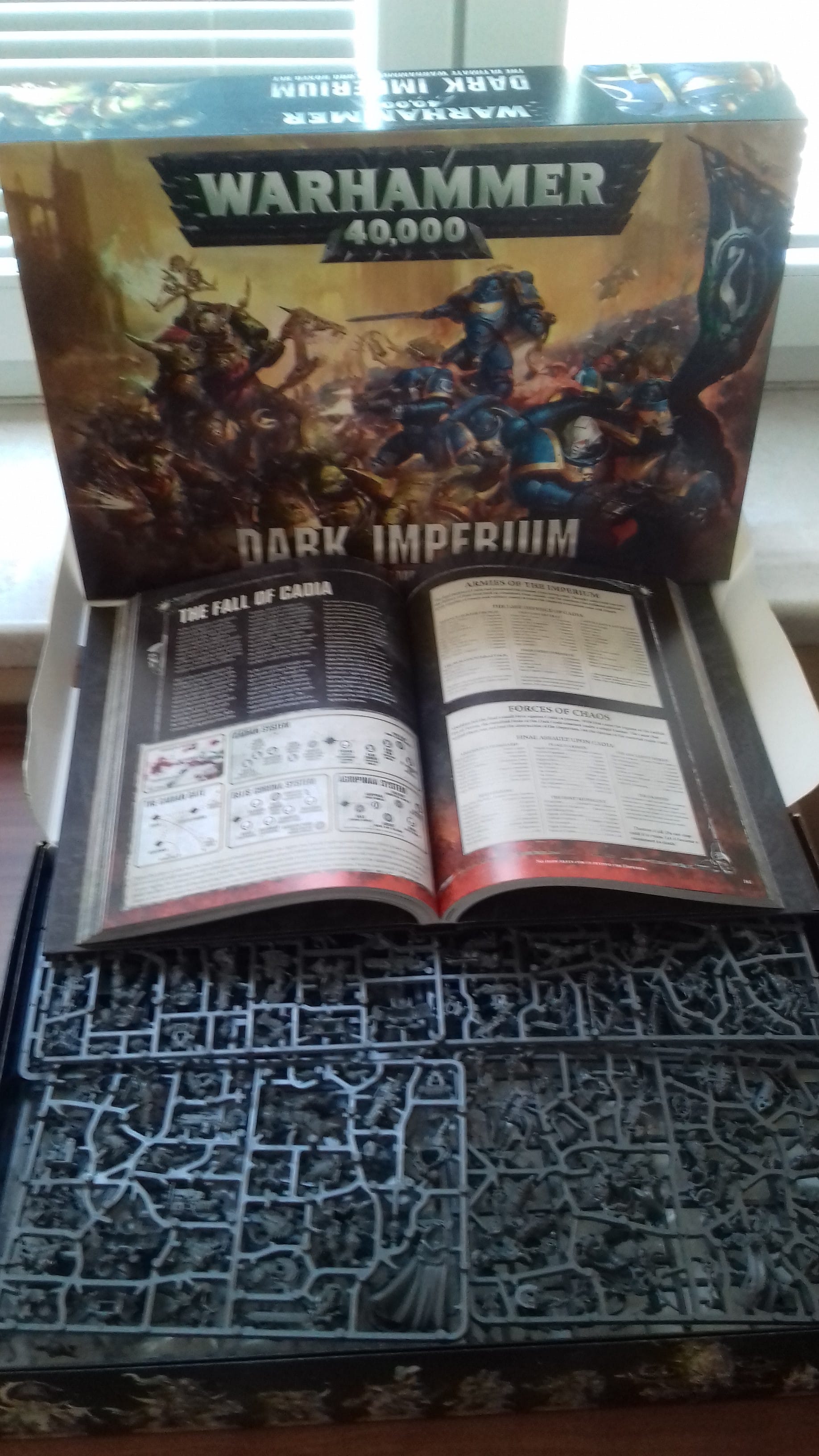 Výborný starter set novej edície Warhammeru 40,000. Novú edíciu je radosť hrať, obzvlášť si cením zvýraznenie faktu, že existuje viacero ciest ako si ju užiť, turnajová mentalita a výhra za každú cenu je len jedna z nich. Set je dosť dobrá úspora, lebo obsahuje dve celé armády nových Mariňákov a Death Guardy, ako aj kompletnú hlavnú knihu pravidiel v pevnej vazbe. Aj keď tiež nie som úplne nadšený novými zmenami v backrounde (ale well, všetko je to propaganda :P ), tak modelom sa nedá nič vytknúť. Konečne truescale marína a krásne nechutný nurgláci.