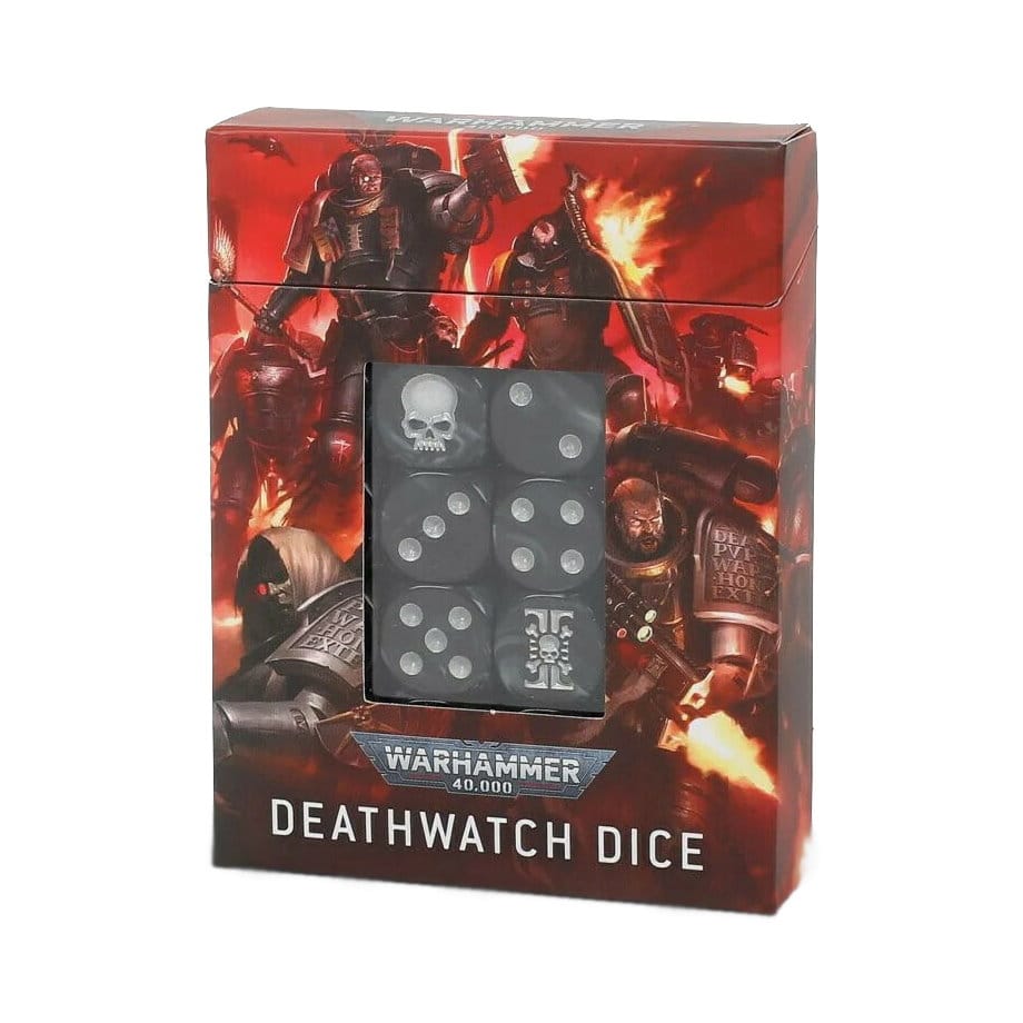 Sada obsahuje 20 šestistěnných kociek v štýle armády Deathwatch pre hru s miniatúrami Warhammer 40000.