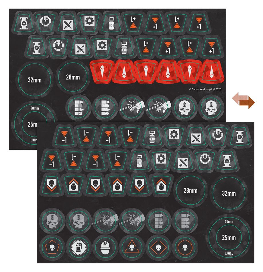 Vnútri krabice nájdeš – hárok s 39 obojstrannými žetónmi Deathwatch, celkovo 146 plastových dielov, 1x okrúhlu podstavu Citadel 40 mm a 4x okrúhle podstavy Citadel 32 mm.