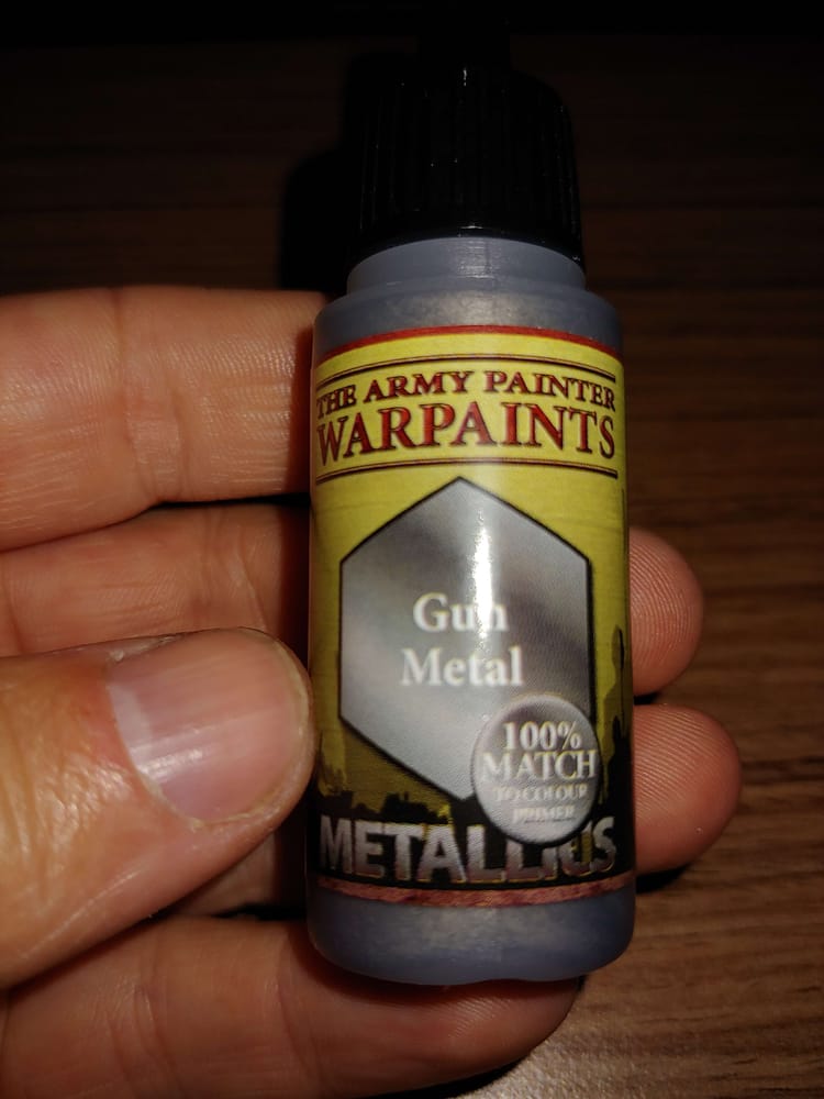 Je toto hodnotenie prínosné? ÁNOBarva má odstín tmavého kovu a hodí se na střelné zbraně. Jsem s ní velice spokojen, stejně jako se všemi metalickými barvami od Armypainter.
