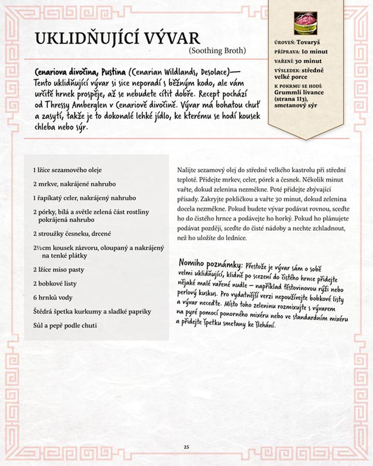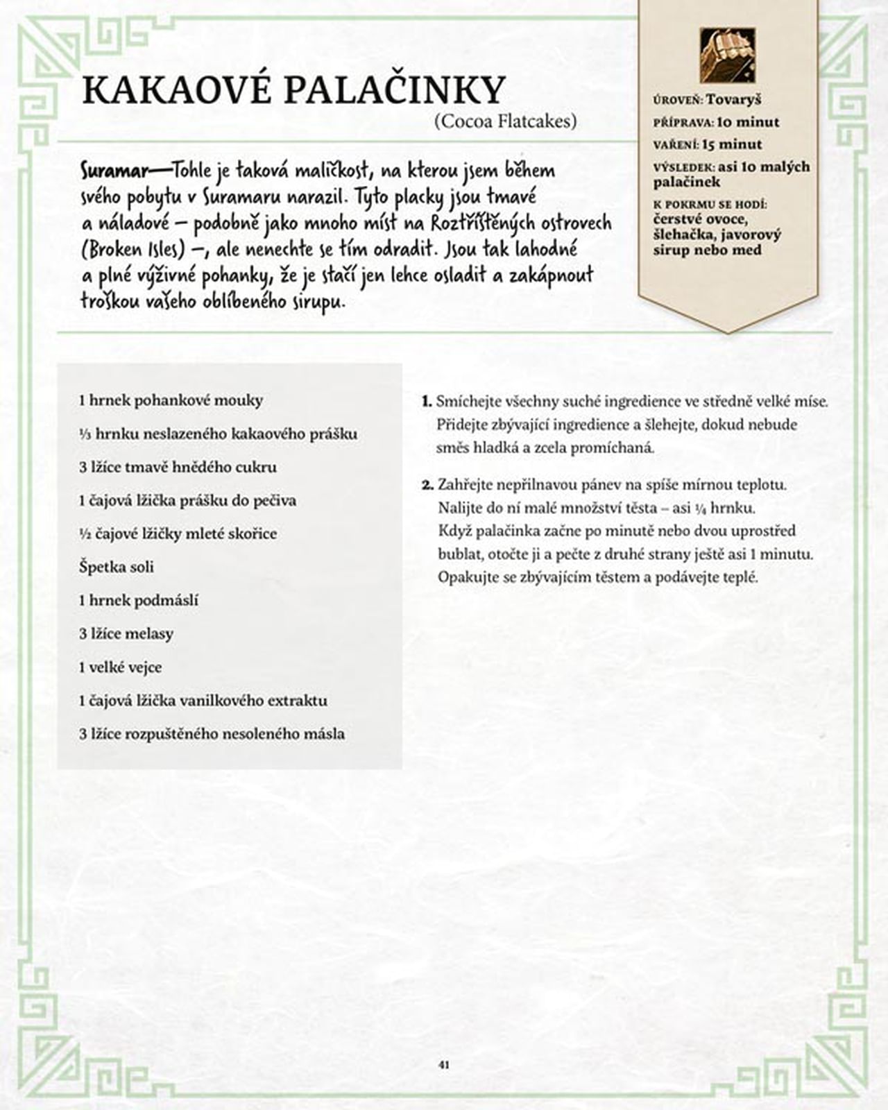 Kniha je krásně rozdělena podle obtížnosti daných receptů a místa jejich původu. Obsahuje i krásné ilustrace a pro fanoušky WoW co rádi vaří (případně jí :D) je to skvělá koupě.