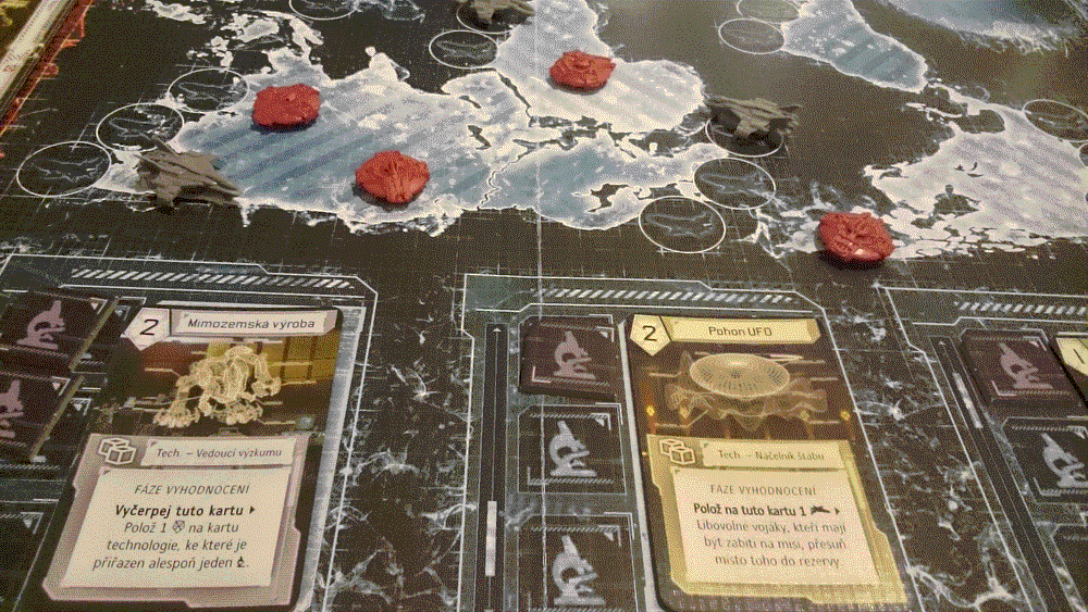 Tato hra nás vcelku zabavila. Zpracování je velice pěkné co se týče všech komponent i neobvyklého prvku v podobě aplikace. Hra pro naučení není příliš složitá. Samotné hraní na mě působí velice dobře. Ve vyšších obtížnostech jste utlačováni nejen nepřítelem, dostupným rozpočtem a neustále škodícími krizemi, ale i omezeným časem, což dává hře jistou dynamičnost a nemáte tolik času na přemýšlení a vymýšlení. A hra na vás není většinou příiš milá a tak se během jednoho kola může celá obrana světa zhroutit :-) V aplikaci si před startem hry navolíte obtížnost a jeden z několika scénářů/invazních plánů. Podle toho vám aplikace určí pozici velitelství(podle jeho umístění máte k dispozici různé výhody), různé kombinace nepřátel, se kterými se budete muset vypořádat a také vám určí úroveň paniky na jednotlivých kontinentech. Jednou z možností je také hrát hru sám. Musíte ovládat všechny čtyři role hráčů a vše se na vás hrne trochu víc a méně stíháte.