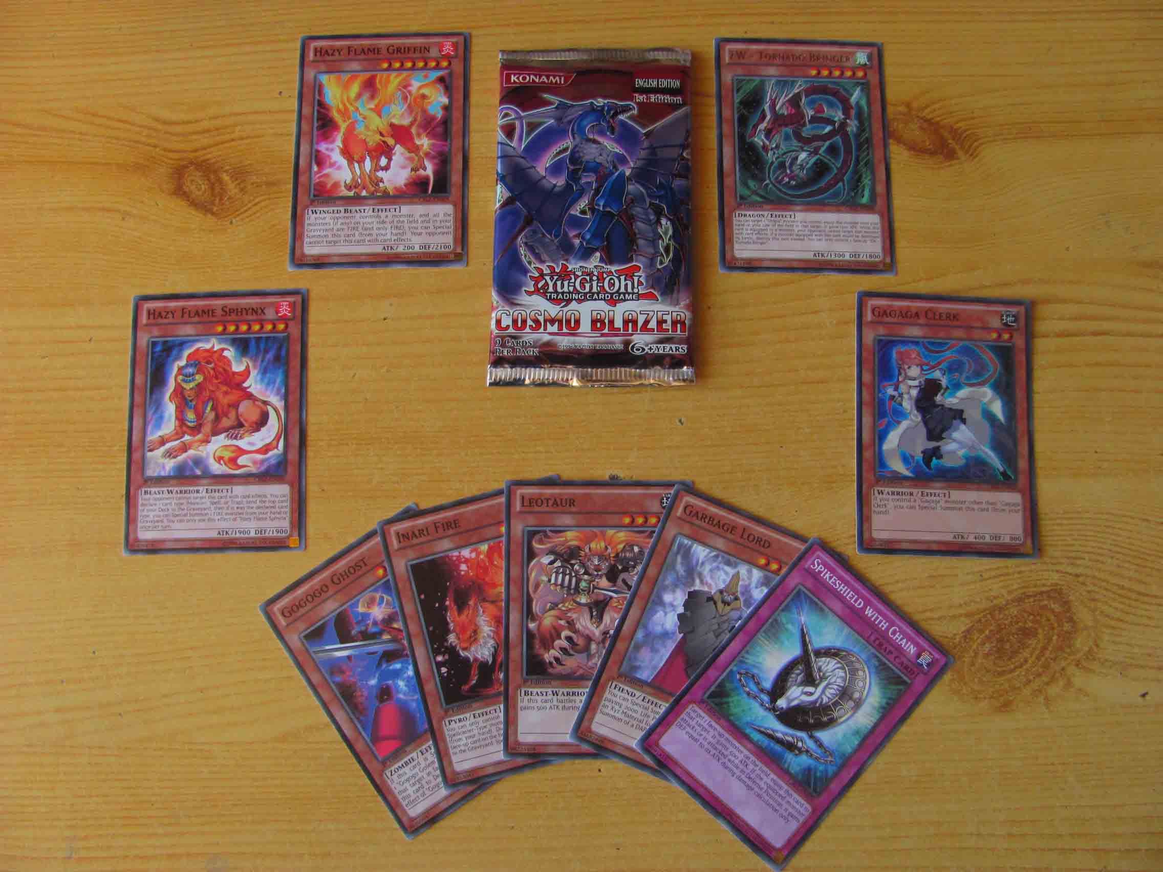 Rozšiřovací balíček ke hře Yu-Gi-Oh čítající 9 náhodných karet ze série Cosmo blazer (celkem 100 karet). V rozšíření můžete dostat karty jako jsou ZW monstra, rozšiřující karty pro XYZ, brotherhood of the fire fist, hazy flame, XYZ, kouzla a pasti související s těmito typy.