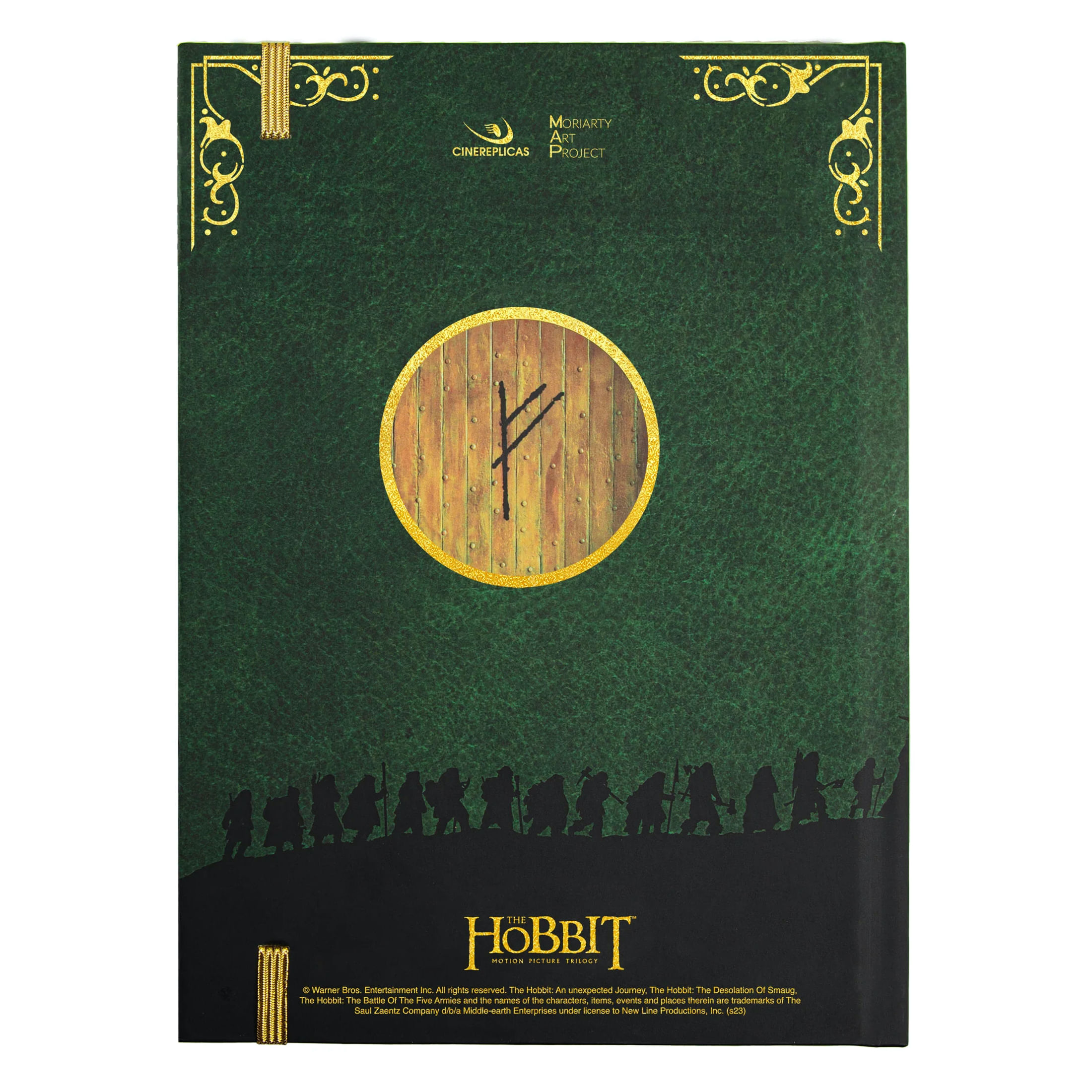 Výpravný zápisník pro čtenáře a fanoušky Hobita obsahuje řadu krásných grafických prvků, včetně Thorinovy mapy. Zápisník je v pevných deskách, linkovaný a zavírá se pomocí gumičky.