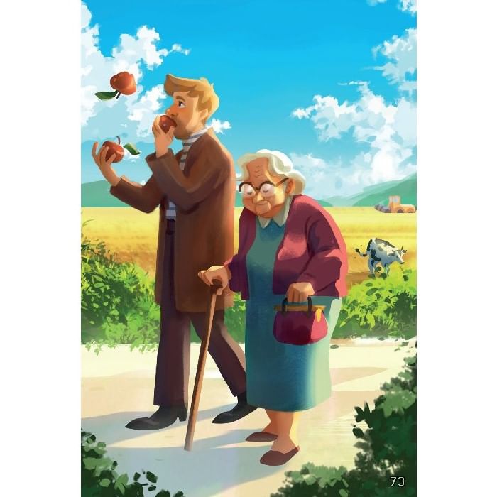 Dedko nakoniec otvorí oči apokusí sa medzi spomienkami na stole nájsť tú správnu kartu
