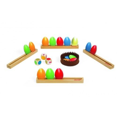 Cieľom tejto strategickej hry je pozbierať ako prvý 5 vajec rôzne farby na svojom stojane. Kto bude najšikovnejší a najrýchlejší?